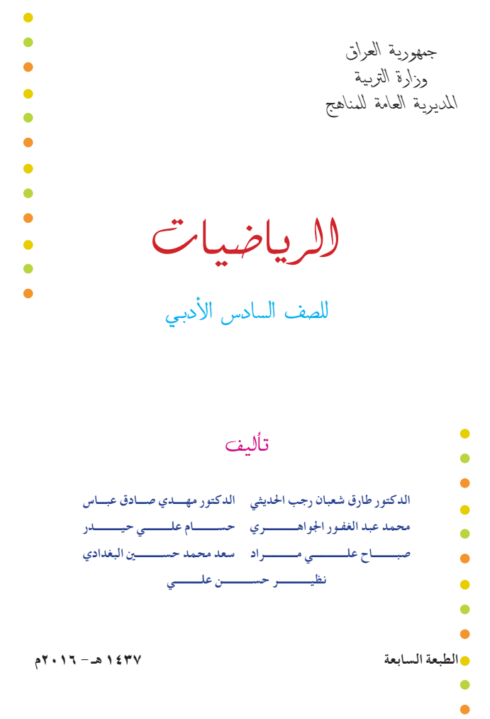 كتاب الرياضيات للصف السادس الأدبي المنهج الجديد 2016