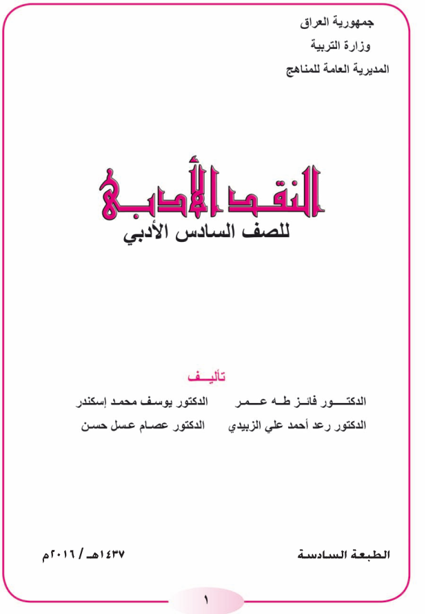 كتاب النقد الأدبي للصف السادس الأدبي المنهج الجديد 2016