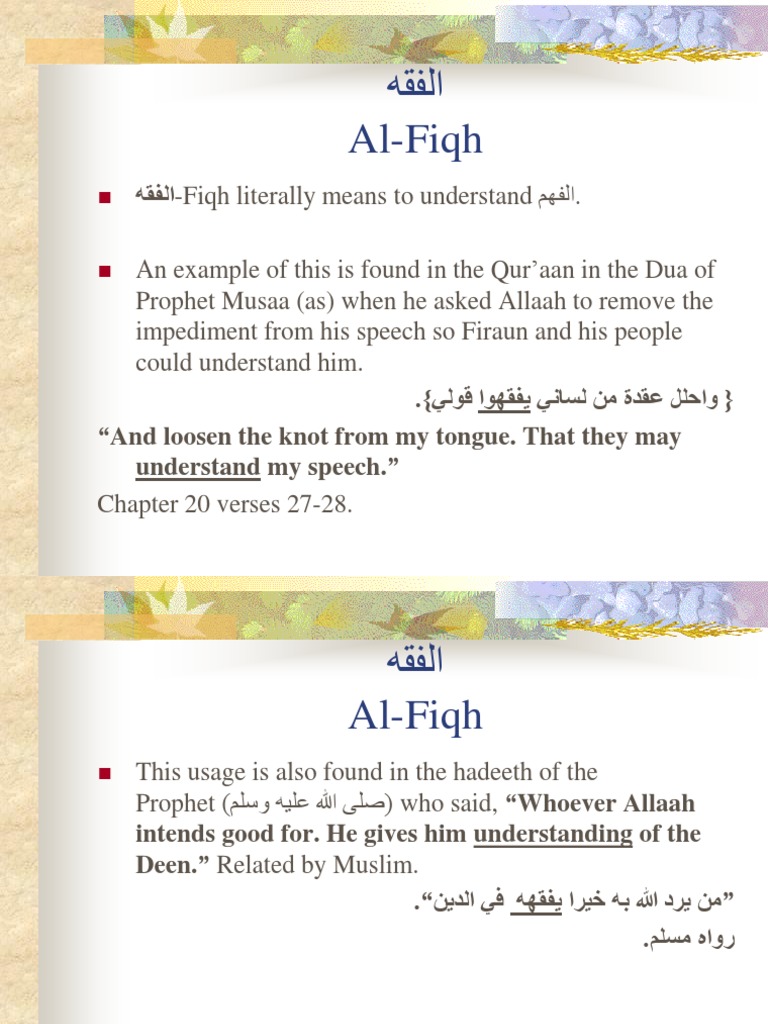هقفلا Al Fiqh هقفلا Fiqh Literally Means To Understand مهفلا Hadith Prophets And Messengers In Islam